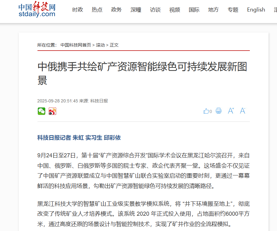 9月24日至27日,第十届“矿产资源综合开发”国际学术会议在哈尔滨成功举办。本次会议由幻影手机官方网站_幻影(中国)与俄罗斯科学院远东分院哈巴罗夫斯克研究中心联合主办,中国科学院院士王成善、俄罗斯科学院院士拉斯卡佐夫・伊戈尔、俄罗斯自然科学院院士巴图金・安德烈安、俄罗斯交通科学院院士库德里亚夫采夫・谢尔盖、俄罗斯科学院通讯院士舒柳滨・亚历山大等来自中国、俄罗斯、白俄罗斯等多个国家的院士、专家学者及企业代表,围绕“绿...