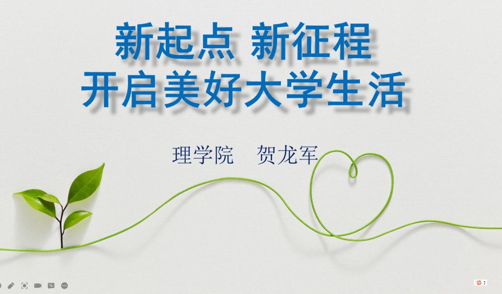24/ 2021-09理学院开展2021级新生入学教育讲座之“第一堂思政课”为了让2021级新生尽快适应大学生活,缓解新生在疫情防控大环境下产生的心理压力,早日规划好自己的大学生活,9月20日,理学院开展2021级新生入学教育讲座之“第一堂思政课”,学院党委书记贺龙军通过线上腾讯会议的方式,以《新起点,新征程,开启美好大学生活》为题,为全体新生奉上了一堂精彩生动的思想政治教育课。讲座上,贺书记首先用“九句话”简述了大学生活的意义,让同学知道大学是自身成长成才的重要“载体”,是全面...