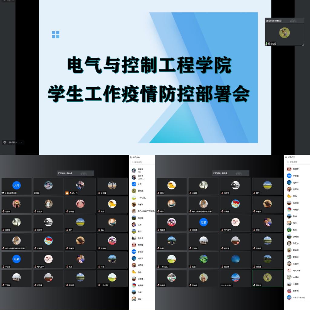 18/ 2022-03【同心战“疫”】电气与控制工程学院召开学生工作疫情防控部署会议3月17日晚,电气与控制工程学院召开学生工作疫情防控部署会议,安排部署疫情防控相关工作。会议采用腾讯会议形式召开,学院全体辅导员、班主任参加会议,会议由学院党委副书记侯树成主持。会上,侯树成通报了学校疫情防控工作最新情况,传达了学校3月16日疫情防控工作部署会议以及上级部门相关精神。同时,围绕学校疫情防控工作部署会议提出的“九个进一步、九个到位”的具体要求,结合学生处3月17日下午召开的学生工作疫情防控...