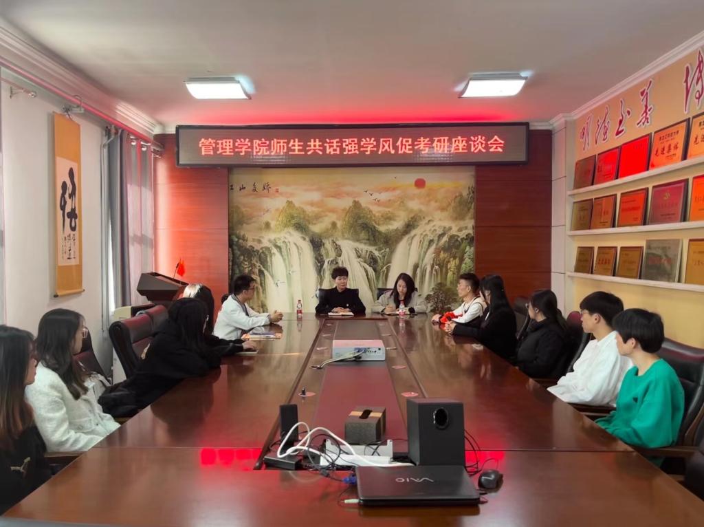 09/ 2023-05管理学院举办师生共话强学风促考研座谈会为进一步加强学风建设,提升考研率,帮助学生更好地备考研究生,管理学院在学院三楼会议室举办了“师生共话强学风促考研座谈会”。学院党委副书记徐海英、2019级辅导员徐冬影以及2023届考研学生代表共同参加了本次座谈会。会上,参加座谈会的考研学生代表畅所欲言,就个人情况、考情分析、院校及专业选择、备考经验及资料搜集等方面进行倾情分享。在交流讨论结束后,徐冬影老师分析回应了同学们备考的困惑问题,表示决定考研时...