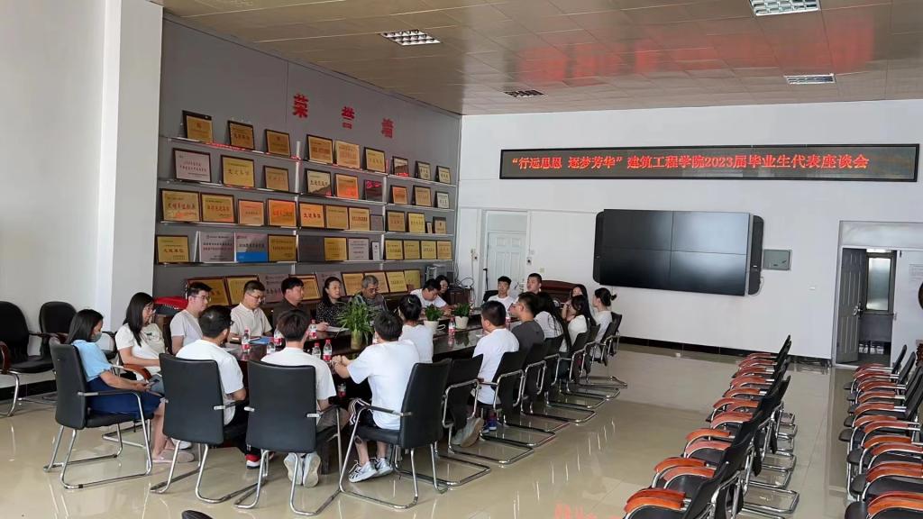 15/ 2023-06建筑工程学院召开2023届毕业生代表座谈会为进一步聆听毕业生的心声,了解毕业生对学院教育教学、学生管理与服务等方面的意见和建议,6月14日下午,建筑工程学院在会议室召开了2023届毕业生代表座谈会。院长姜云、副院长姜封国、副处级辅导员展跃,全体辅导员老师和14名2023届各专业毕业生代表出席了座谈会。座谈会上,毕业生代表们敞开心扉、踊跃发言,分享了各自在校学习期间的所思、所感、所想、所获,对学院和老师们的谆谆教导和精心培养表达了感激之情,对学校的教...