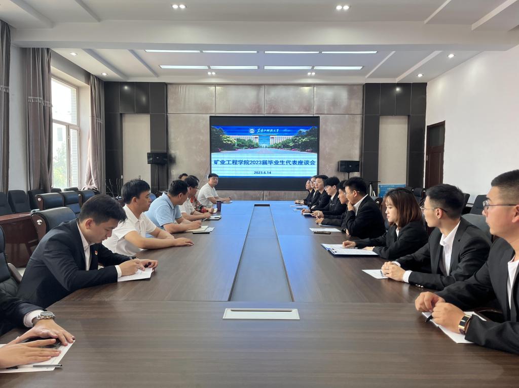 16/ 2023-06矿业工程学院召开2023届毕业生代表座谈会6月14日,矿业工程学院组织召开了2023届毕业生代表座谈会,学院党委书记刘海涛、党委副书记李强、副院长秦涛、副处级辅导员刘星彤出席此次座谈会,辅导员杨永超、杨明、高媚娇及2023届毕业生代表参加,座谈会由党委副书记李强主持。在座谈会上,党委副书记李强向毕业生代表介绍了本次座谈会的目的和意义。他强调,座谈会的目的是为了了解毕业生对学院教育教学工作的看法和建议,以便进一步改进和提升教育质量。他希望毕业生代表...