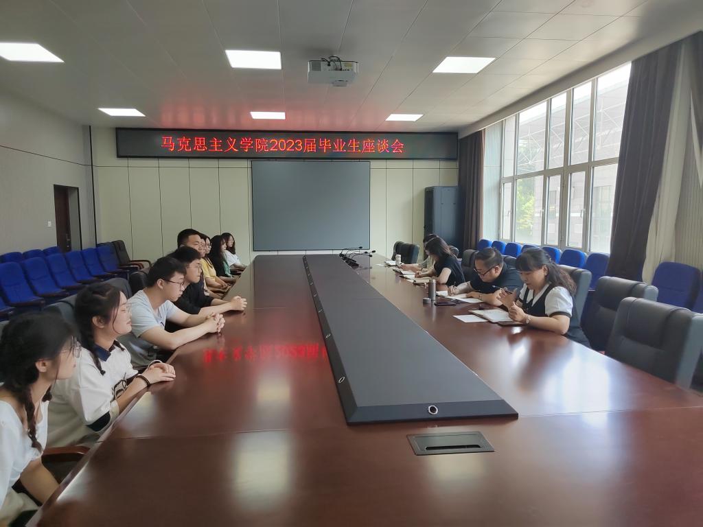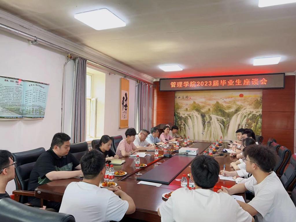 15/ 2023-06研究生学院召开2023届毕业生座谈会根据学校2023届毕业生离校工作安排,为切实听取毕业生对母校发展建设的建议和意见,研究生学院于6月13日下午组织召开2023届毕业生座谈会。研究生学院党委书记王维杰、院长张保勇,辅导员刘思锐以及2023届各专业的15名毕业生代表参加会议。会议由学工办主任郝鑫主持。首先,毕业生代表围绕研究生期间个人收获,母校师生情怀,对未来的规划憧憬,对学校教育教学、人才培养、综合服务、学校建设与发展等方面的建议与意见等座谈交流...