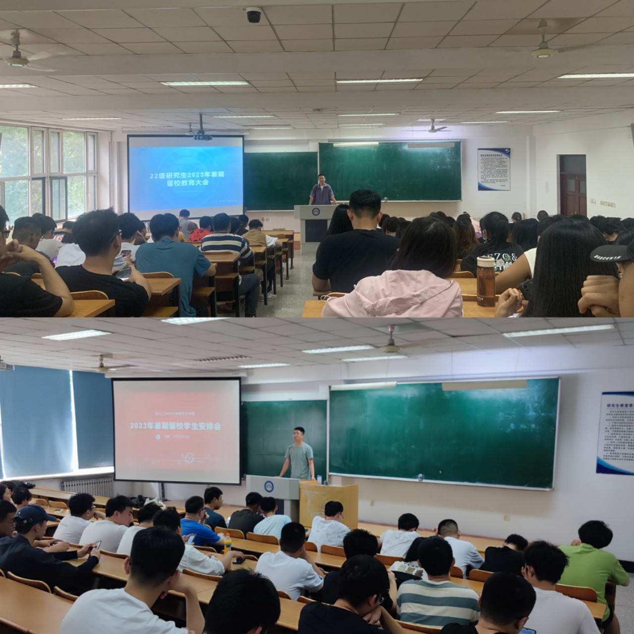 03/ 2023-07研究生学院召开暑期留校教育大会为进一步加强暑期留校研究生管理,切实增强留校研究生安全和学习教育。研究生学院于7月1日下午在科厦W305、W308教室分年级召开暑期留校教育大会。辅导员关升、孙武和300余名留校研究生参加本次大会。首先,关升、孙武传达了《2023年暑期留校学生安排意见》的有关精神,并从住宿安全、消防安全、交通安全、饮食安全,防范网络电信诈骗、请假制度等方面作了具体说明,叮嘱留校研究生要科学规划假期学习生活,注意劳逸结合,留校期...