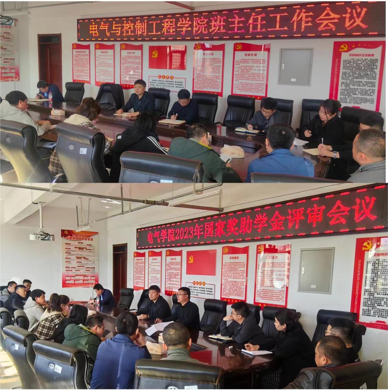 11/ 2023-10电气学院召开班主任工作会议为做好国家助学金和国家励志奖学金的评选,安排部署近期学生工作重点,电气学院于10月10日下午,在朝阳楼0607召开电气学院班主任工作会议。学院党委副书记侯树成出席会议并讲话,学院全体班主任参加会议,会议由学工办主任韩大伟主持。韩大伟对国家助学金、国家励志奖学金的评选方案做了详细解读,全面介绍了助学金和励志奖学金的评定工作安排、具体流程以及规范各类评选过程渠道。强调班级要开好宣讲会,严格落实文件精神和政...
