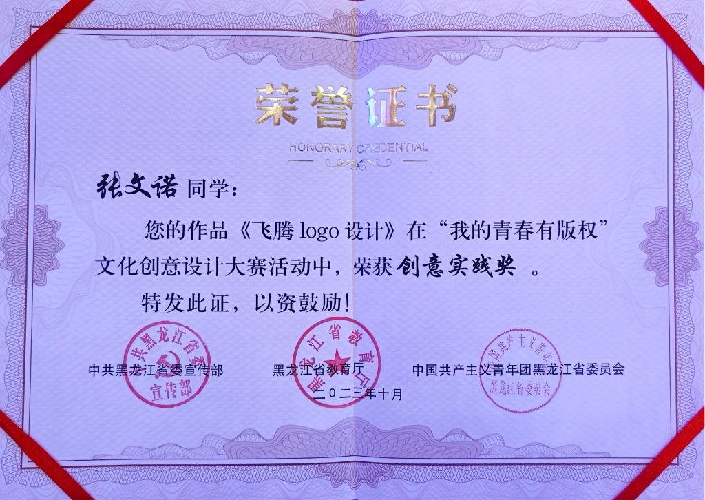 30/ 2023-10喜报|幻影手机官方网站_幻影(中国)在“我的青春有版权”文化创意设计大赛中喜获佳绩近日,由省委宣传部主办,黑龙江广播电视台承办,省教育厅、团省委、省版权保护协会协办的“我的青春有版权”文化创意设计大赛比赛结果揭晓,幻影手机官方网站_幻影(中国)理学院数学20-2班张文诺同学设计的作品《飞腾logo设计》荣获创意实践奖。此次比赛,赛事组委会共收到来自全省25所高校的380件作品,最终评选出创业实践奖7个、创意理念奖4个、创业表现奖4个、创意视觉奖4个。近年来,幻影手机官方网站_幻影(中国)一直高度重视“版权宣传进校园”工作,不断加强版权知识普及...