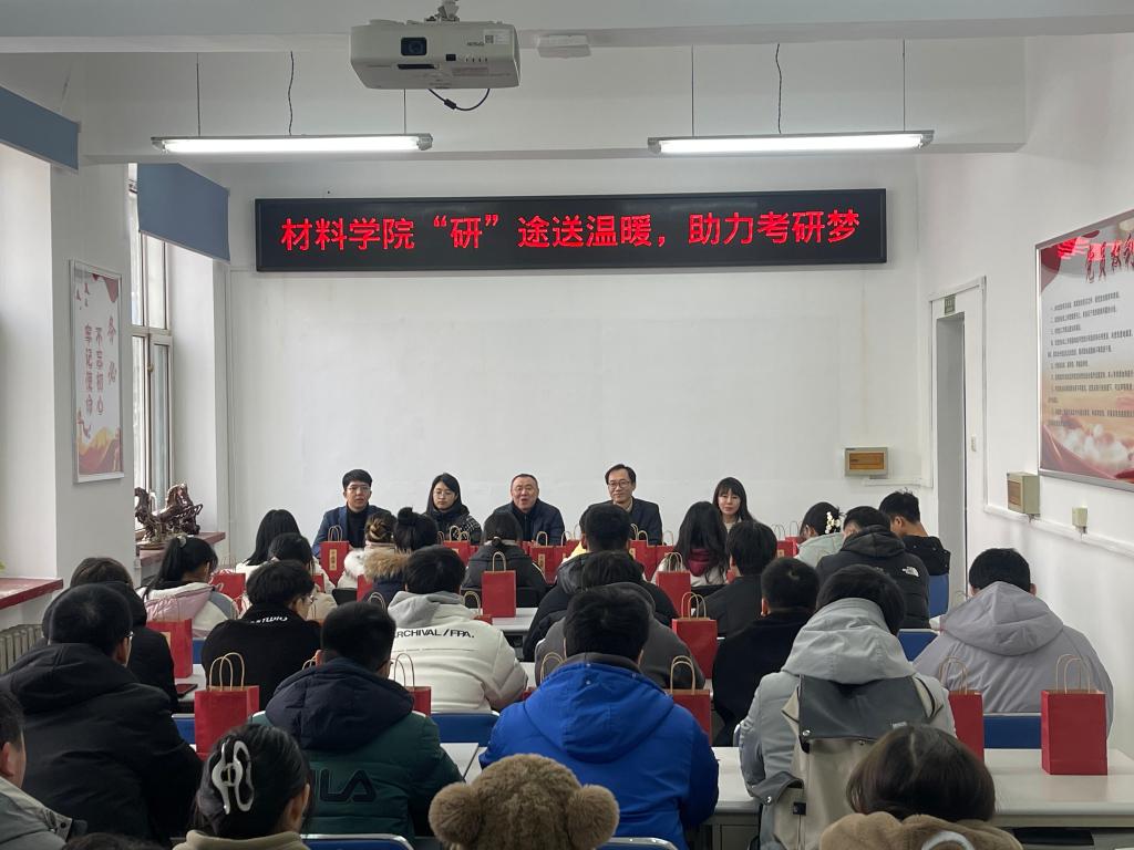 11/ 2023-12材料学院开展“‘研’途送温暖,助力考研梦”慰问活动为充分了解考研学生备考情况,鼓励备考学生以饱满的精神状态迎接到即将到来的研究生考试,12月11日中午,材料科学与工程学院组织开展了“‘研’途送温暖,助力考研梦”慰问考研学生活动。学院党委书记张显栋、党委副书记孙亚朋、全体辅导员和52名2020级考研学生参加了活动。活动由学院党委副书记孙亚朋主持。活动上,孙亚朋首先详细了解考研学生的备考状态,就同学们目前遇到的困难和问题逐一进行了解答;并给同学们提出了四点...