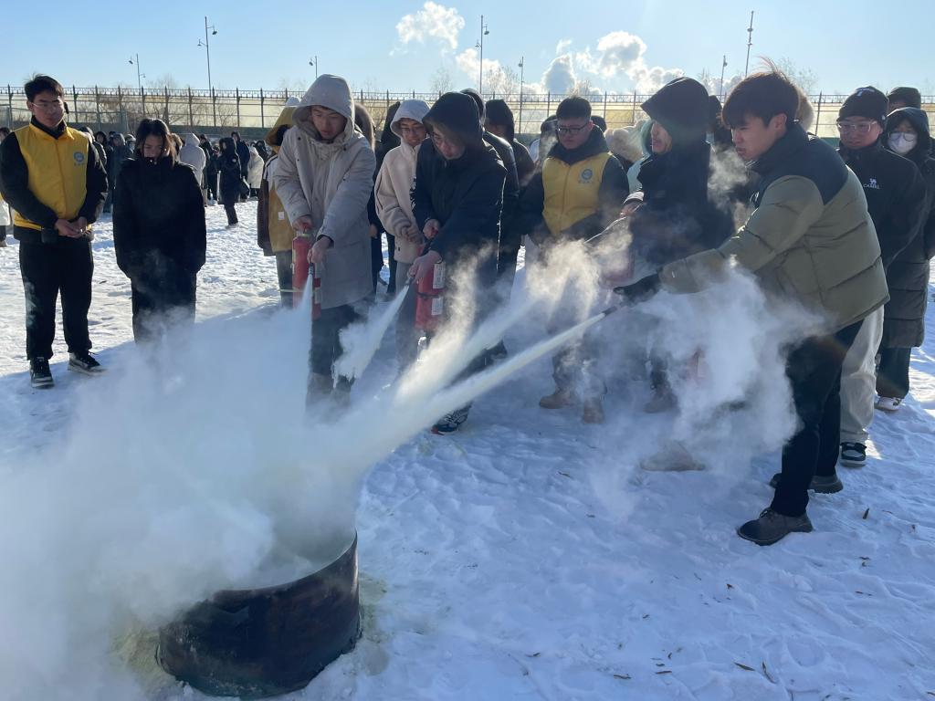 11/ 2023-12学校开展2023年校级学生组织骨干消防技能培训为深入贯彻落实学校安全工作会议精神,12月10日上午,校团委联合保卫处在篮球场东侧空地开展校级学生组织骨干消防技能培训,校团委全体教师和校级学生组织骨干200余人,参加了此次培训。保卫处防火科吴昀龙老师向同学们详细讲解了消防安全知识和初期火灾的扑救方法,还亲自演示了灭火器的正确使用方法,传授了“一提、二拔、三握、四压”的灭火器使用口诀,详细的讲解、熟练的操作,使在场同学掌握了简单消防安全技能。吴老师还...