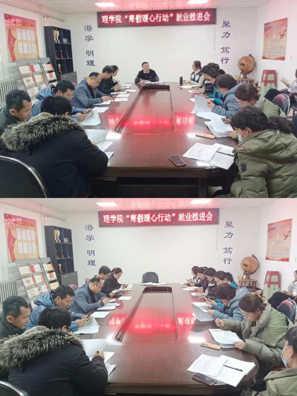 25/ 2023-12理学院召开“寒假暖心行动”就业推进会为深入贯彻教育部关于做好2024届全国普通高校毕业生就业创业工作的重要部署和学校关于寒假就业服务不断线的工作要求,12月21日下午,学院在二楼会议室召开了“寒假暖心行动”就业推进会。学院班子成员、全体“揭榜”教师参会。会议由党委副书记刘星彤主持。首先,就业辅导员刘鑫鹏汇报了学院2024届毕业生就业整体情况。随后,“揭榜”教师汇报了各自所带毕业生的就业情况、未就业原因及下一步工作打算。学院党委副书记刘星彤对...