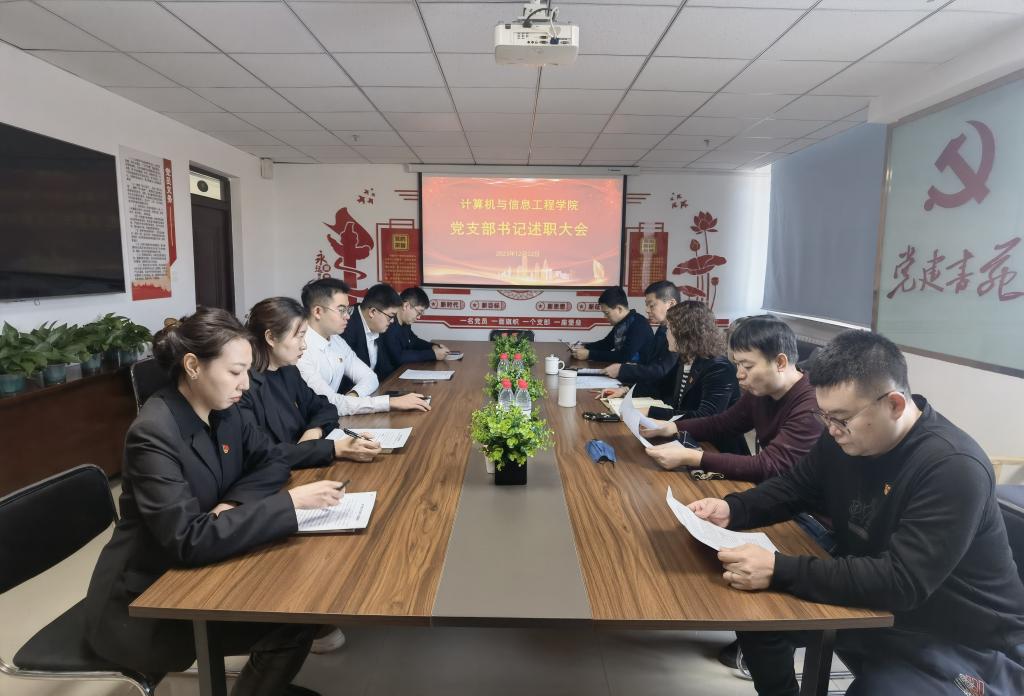 25/ 2023-12计算机学院召开2023年度党支部书记述职评议会为进一步加强基层党支部建设,切实发挥基层党组织的战斗堡垒作用,计算机学院党委于12月22日在朝阳楼1005党建书苑,召开2023年度党支部书记述职评议会,学院党委委员及全体党支部书记参会,会议由学院党委副书记张丽媛主持。会上,三名教师党支部书记和六名学生党支部书记分别从履行职责情况、存在的主要问题及原因、下一步工作思路和主要措施三个方面对党支部一年来的工作进行了全面的梳理总结。学院党委书记彭国军和副书记张...