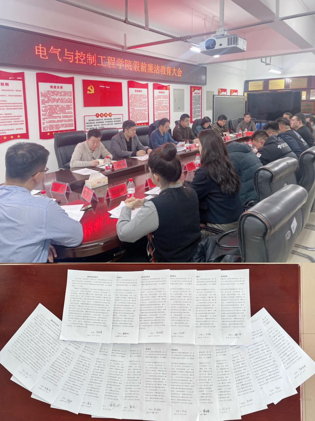 21/ 2023-12电气学院召开假前廉洁教育大会12月20日下午,电气学院在朝阳楼0607会议室召开假前廉洁教育大会。学院全体处级领导干部、纪委委员、中层干部、党支部书记和辅导员参加会议。会议由学院党委书记李鹏银主持。学院纪委书记侯树成,结合学校深化能力作风建设锤炼“扎扎实实、踏踏实实、求真务实”优良作风的要求,强调,要不断深化开展不良作风整治,把严的基调、严的措施、严的氛围长期坚持下去,锲而不舍的落实中央八项规定及其实施细则精神,持之以恒纠治“四...