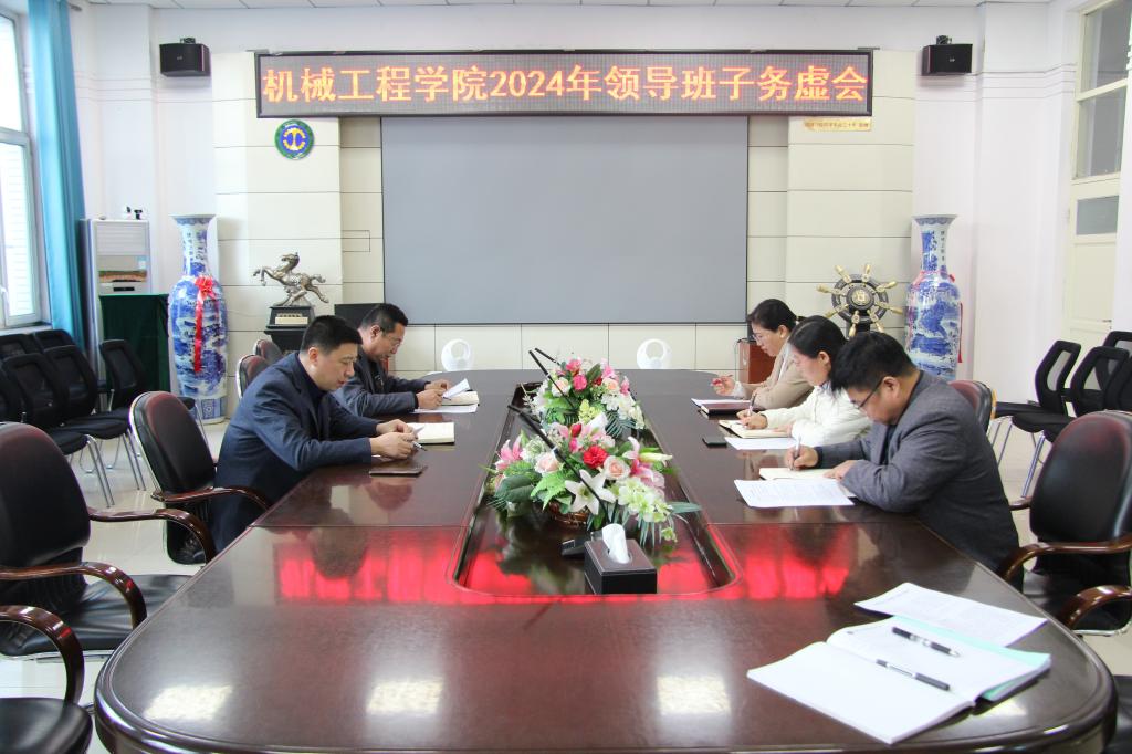 04/ 2024-03机械工程学院召开2024年领导班子务虚会3月1日下午,机械工程学院在学院二楼会议室召开了2024年领导班子务虚会。会议的主题是:“凝心聚力谋发展·开拓创新谱新篇”。会议的主要内容是:深入学习党的二十大精神和习近平总书记视察我省重要讲话重要指示精神,贯彻落实学校2024年教职工代表大会暨年度工作部署会议精神,围绕如何做好2024年工作,深入研讨主要思路、重点工作、创新举措,希冀通过务虚会带领大家定好盘子、厘清路子、开对方子。会议由学院党委书记吕刚主持...