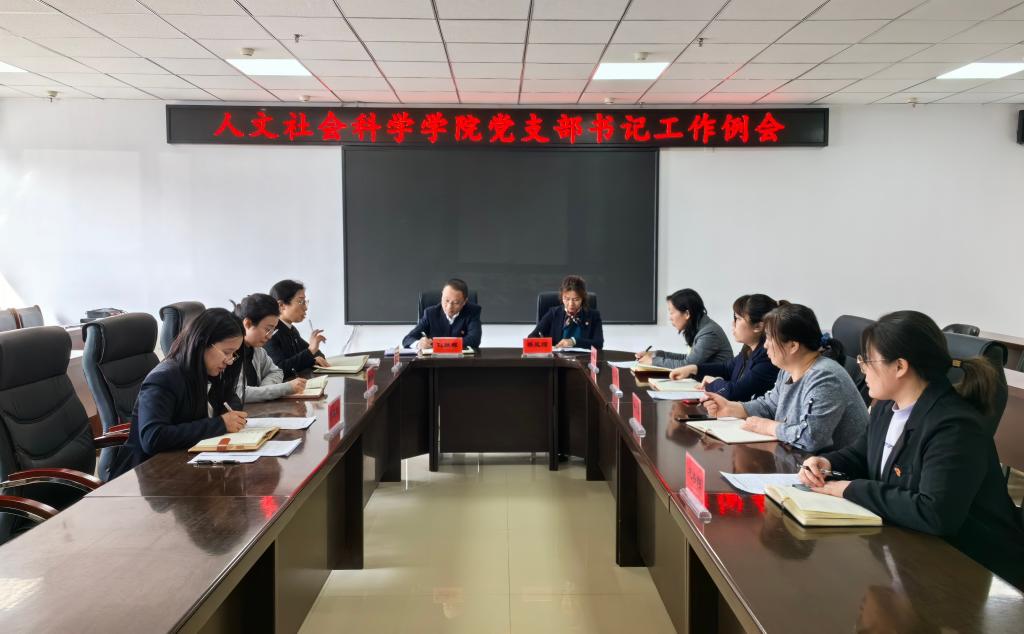 07/ 2024-03人文社会科学学院召开党支部书记工作例会3月7日中午,人文社会科学学院在朝阳楼0317会议室召开党支部书记工作例会。学院党委书记孙晓辉出席会议并讲话,学院专职组织员张春艳、全体党支部书记参加会议。会议由学院党委副书记杨凤娟主持。会上,学习传达了我省省委常委会(扩大)会议暨省委党的建设工作领导小组会议精神、学校党委二届六次全体会议精神及2024年教职工代表大会暨年度工作部署会议精神;各党支部书记围绕“一支部一特色”建设情况进行了交流,就创新拓展...