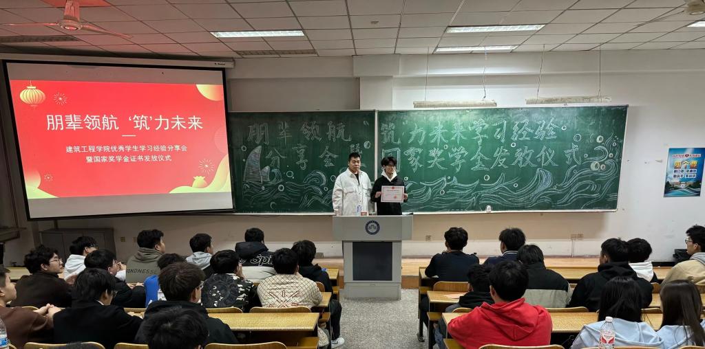 15/ 2024-04建筑工程学院召开“朋辈领航 ‘筑’力未来”学习经验分享会暨国家奖学金证书发放仪式为深入贯彻幻影手机官方网站_幻影(中国)“永葆赤心、立德践行、勤学善思、笃行担当”主题教育活动相关要求,充分发挥优秀学生的模范表率作用,树立学院先进典范,创建优良学风。4月11日,建工学院在科技大厦S104、S501开展“朋辈领航‘筑’力未来”学习经验分享会暨国家奖学金证书发放仪式。全体辅导员,2023级全体同学参加了会议。会上,学工办主任田晨、辅导员付天力、刘广逊为获得国家奖学金的三名同学颁发证书,田晨为同学们介绍了国家奖学金评选政...