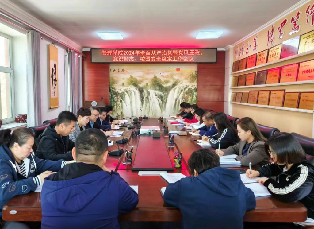26/ 2024-04管理学院召开2024年全面从严治党暨党风廉政、意识形态、校园安全稳定工作会议为深入贯彻落实好学校2024年全面从严治党暨巡视整改工作和安全工作会议精神,层层压紧压实全面从严治党和校园安全稳定主体责任,以高质量党建引领学院高质量发展。4月26日上午,管理学院在三楼会议室召开2024年全面从严治党暨党风廉政、意识形态、校园安全稳定工作会议。会议由学院党委书记何景洋主持,学院党政班子成员、各系(办、中心)主任、教师和学生党支部书记、全体辅导员参加了会议。会上,集中学习了《习近平总书记关...