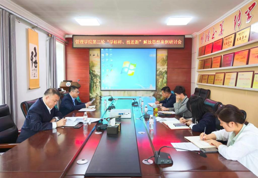 05/ 2024-06【学标杆·找差距】管理学院召开第二轮“学标杆、找差距”解放思想案例研讨会为深入学习贯彻习近平总书记关于全面加强党的纪律建设的重要论述,持续推进党纪学习教育和深化能力作风建设工作走深走实,6月3日上午,管理学院召开第二轮“学标杆、找差距”解放思想案例研讨会,学院党委理论学习中心组全体成员参加会议。会议由学院党委书记何景洋主持。会上,传达学习了习近平总书记关于全面加强党的纪律建设的重要论述;集中学习了《坚持、发展好新时代“枫桥经验”》《点燃“红色引擎”,全国党建标杆院系...