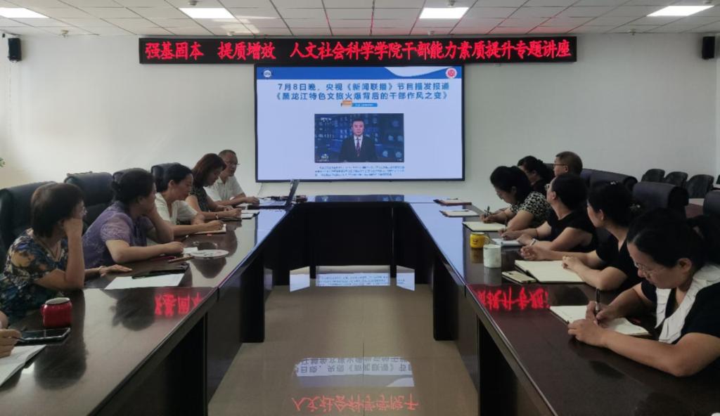 19/ 2024-08强基固本 提质增效 人文学院开展干部能力素质提升专题讲座为深入贯彻落实习近平总书记关于加强干部能力作风建设的重要论述,持续推动深化能力作风建设“抓基层、打基础、强落实、见实效”活动走深走实,8月16日下午,人文学院在朝阳楼0317会议室开展了以《提能力转作风抓落实促发展锻造忠诚干净担当的高素质干部队伍》为主题的讲座。学院领导班子成员、全体中层干部、组织员、辅导员参加,讲座由学院党委书记孙晓辉主讲,学院党委副书记杨凤娟主持。讲座紧紧围绕党的十八大以来习近平总...