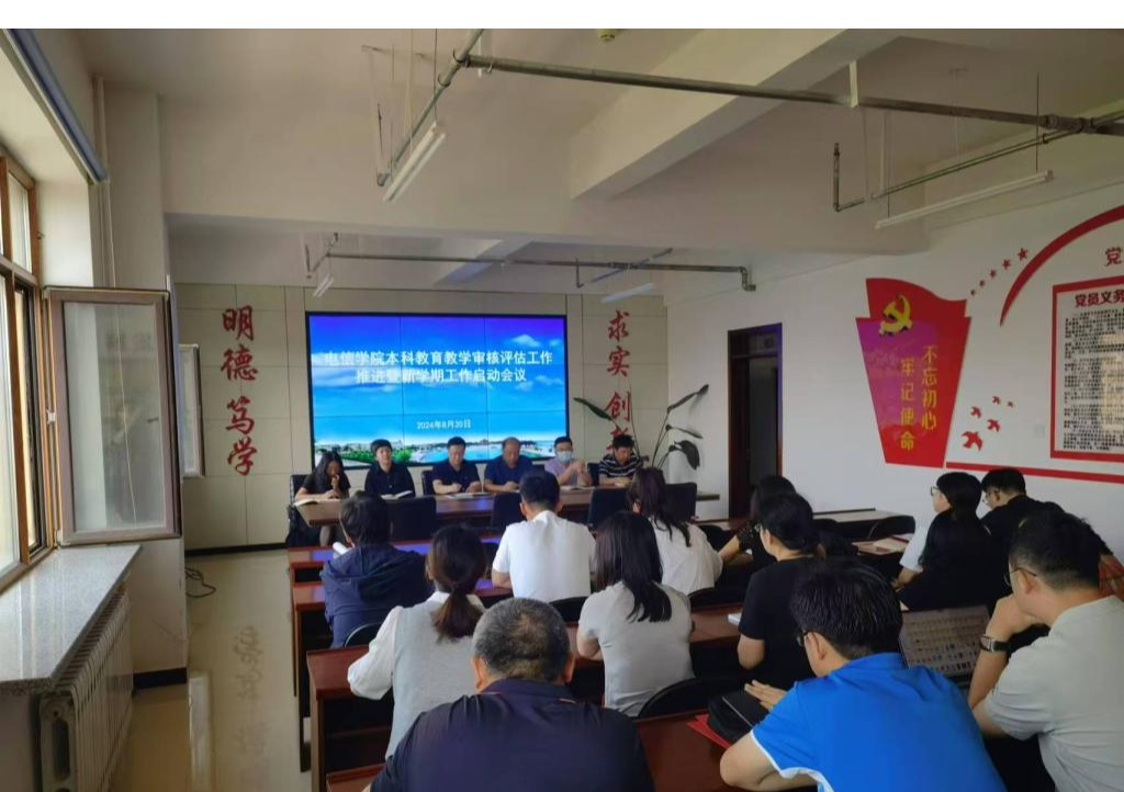 21/ 2024-08电子与信息工程学院召开本科教育教学审核评估工作推进暨新学期启动会议8月20日上午9时,电子与信息工程学院在朝阳楼0809会议室召开本科教育教学审核评估工作推进暨新学期启动会议。学院领导班子成员、全体教职工参加会议,会议由学院党委书记齐秀强主持。会上,党委副书记吕平围绕学生工作强调了学生返校、身心安全、新生报到和首问负责制;副院长刘付刚对研究生报到、导师遴选、科技成果转化等进行了安排;副院长冯福生结合审核评估和开学启动工作进行了布置。学院院长杨庆江对上学期评估工作从配...