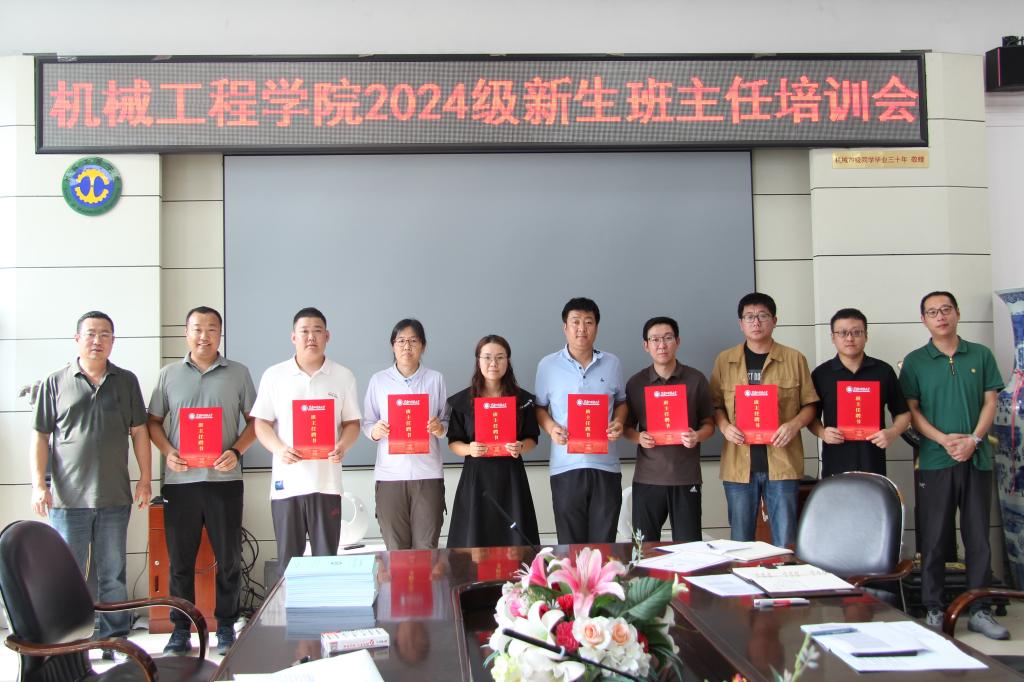 23/ 2024-08凝聚“新力量”,共谱“新篇章”——机械工程学院召开2024级新生班主任培训会为进一步加强学院班主任队伍建设,切实提升新生班主任专业素养和业务能力,确保新生入学接待工作高效优质开展,8月20日下午,机械工程学院在二楼会议室召开了2024级新生班主任培训会。学院相关辅导员和2024级新生班主任参加会议。会议由学工办负责人戴劲主持。会上,2024级新生辅导员迟文玉、翟志斌结合学校有关工作方案和会议精神,从新生入学报到前的事务准备、报到流程和入学前期的军训、入学教育等事务作了介绍和讲解;戴劲...