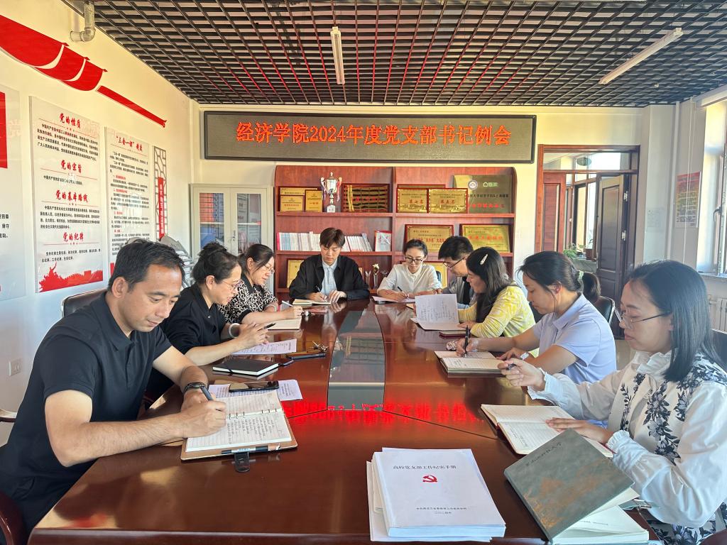 06/ 2024-09经济学院召开新学期党支部书记工作例会为深入学习贯彻党的二十届三中全会精神,进一步提升学院党建工作质量,切实发挥党建引领作用,不断提升党支部书记履职能力,9月5日下午,经济学院在朝阳楼0502室召开新学期第一次党支部书记工作例会。学院党委书记、副书记、全体党支部书记参加会议,会议由学院党委书记雷金屹主持。会上,学院党委副书记邬丽群领学党的二十届三中全会精神;各党支部书记依次汇报了上半年工作进展和取得的成绩,分析了存在的问题和原因,并介绍...