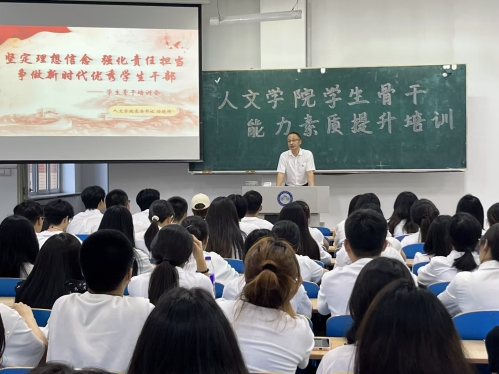 03/ 2024-09人文学院开展学生骨干能力素质提升系列培训为学习贯彻党的二十届三中全会精神,勉励学生骨干勇担时代使命,争做让组织放心、让老师信任、让同学认可、让自己满意的优秀学生干部。人文学院于8月25-29日召开学生骨干能力素质提升系列培训。此次培训共设置5讲,内容涵盖思想政治教育、危机预防处置、作风建设、干部职责、工作启动等,全院120余名学生骨干参加了培训。党委书记孙晓辉以“坚定理想信念 强化责任担当 争做新时代优秀学生干部”为题,强调学生干部要坚定理想信...