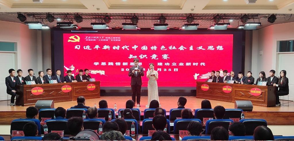 28/ 2024-11机械工程学院举办习近平新时代中国特色社会主义思想知识竞赛为把学习贯彻习近平新时代中国特色社会主义思想不断引向深入,切实提升以学铸魂、以学增智、以学正风、以学促干的学习成效,近日,机械工程学院举办了以“学思践悟新思想·建功立业新时代”为主题的习近平新时代中国特色社会主义思想知识竞赛,并于11月25日晚,在朝阳楼0131会议室举行了决赛。学校党委组织部副部长林松、党委宣传统战部副部长刘慧莹、学院领导班子成员出席决赛现场。全院师生党员和部分入党积极分子共200余人现场观看了决赛。活动开展以来,得到全院师生党员的高度关注和积极参与,本次竞赛...