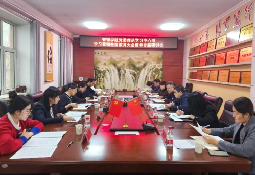 28/ 2024-11管理学院召开党委理论学习中心组学习贯彻全国教育大会精神专题研讨会为深入学习贯彻习近平总书记重要讲话和全国教育大会精神,扎实做好习近平同志《论教育》学习宣传工作,11月26日,管理学院在三楼会议室召开党委理论学习中心组学习贯彻全国教育大会精神专题研讨会。经济学院党委书记雷金屹等党委理论学习中心组成员一行6人列席会议,管理学院党委理论学习中心组成员参加会议,会议由管理学院党委书记何景洋主持。会上,何景洋带领大家一起重温了习近平总书记在全国教育大会上重要讲话精神、对习近平总书记《论教育》主要篇目进行了说明,党委副书记徐海英领学了《第一观察:总书记...