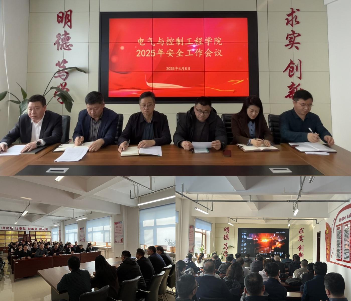09/ 2025-04电气与控制工程学院召开2025年安全工作会议为了进一步贯彻落实上级及学校安全工作精神,切实提高安全意识,提升安全工作管理水平,4月8日下午电气与控制工程学院在朝阳楼0809召开了安全工作会议。会议由副院长李忠勤主持,学院各方面安全负责人共计55人参加了会议。与会人员观看了消防安全宣传片。院长苏勋文传达了“2025年安全工作会议暨学校安委会第一次(扩大)会议”精神,全面总结学院2024年安全工作并安排部署2025年安全工作。党委书记李鹏银、院长苏勋文与处级干部、各部门代表签订《校园安全工作责任书》及《网络安全责任状》。最后...