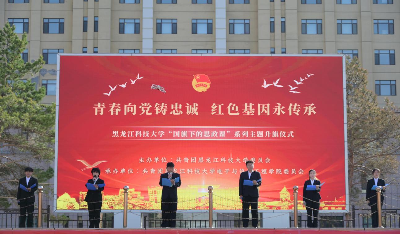 27/ 2025-04电子与信息工程学院 举行“青春向党铸忠诚·红色基因永传承”主题升旗仪式4月23日上午,电子与信息工程学院在体育文化休闲广场举行“青春向党铸忠诚·红色基因永传承”主题升旗仪式。校团委全体老师、学院全体辅导员及500余名青年学子共同参与,以庄严的仪式传承红色精神,凝聚青春力量。上午7时30分,升旗仪式正式开始。在雄壮的《义勇军进行曲》中,全体师生肃立注目,鲜艳的五星红旗冉冉升起,迎风飘扬。嘹亮的国歌声回荡在校园上空,展现了青年学子昂扬向上的精神风貌。升旗仪式后,学生代表深情朗诵《国旗下的青春誓言》,回顾党的百年奋斗历程,表达新时代青年赓续红色血脉、勇...
