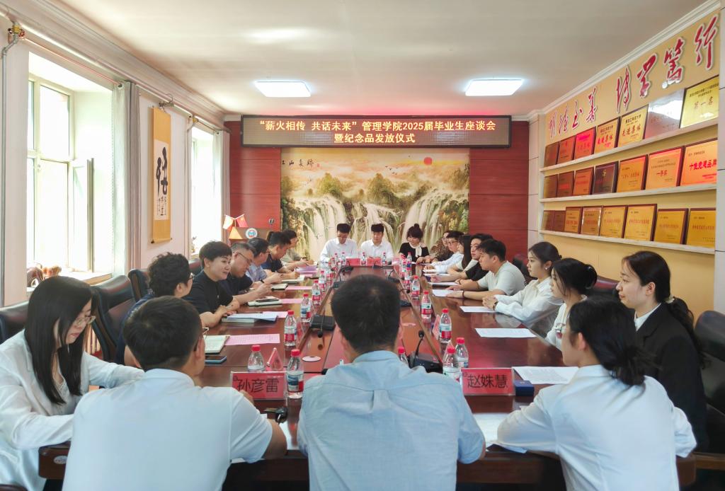 21/ 2025-06管理学院召开“薪火相传 共话未来”2025届毕业生座谈会暨纪念品发放仪式为更好地倾听毕业生心声,积极引导毕业生为学院发展献计献策,结合学校2025届毕业生主题教育“十个一”活动的相关要求,管理学院于6月17日下午在学院三楼会议室召开“薪火相传·共话未来”2025届毕业生座谈会暨纪念品发放仪式。学院领导班子、毕业班辅导员及2025届毕业生代表参加了座谈。会议由党委副书记徐海英主持。座谈会伊始,徐海英介绍了本次座谈会召开的目的和意义,并讲解了专属定制毕业纪念品“独一无二”戒指的深刻寓意,与会毕业生代表深情表达了对母校及学院悉心培养的感恩之情,回顾了大学...