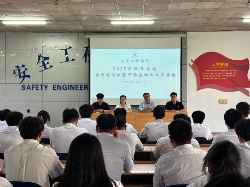 26/ 2025-08安全工程学院召开2025年秋季学期学生工作部署会议为确保2025年秋季学期学生工作平稳有序开展,进一步夯实学生教育管理服务基础,明确新学期工作目标与重点,安全工程学院于近日召开了秋季学期学生工作部署系列会议,全力确保开学启动工作安全、有序进行。8月22日上午,安全工程学院于松花四季会议室召开辅导员例会,学院全体辅导员参加会议,会议由学院党委副书记郑红岩主持。会上,学工办负责人刘科然传达了学生处开学启动会议精神并汇报了开学启动、迎新工作的准备情况;郑红岩对本学期辅导员工作进行了重新分工,明确了新学期的工作目标和重点,鼓舞了士气,...