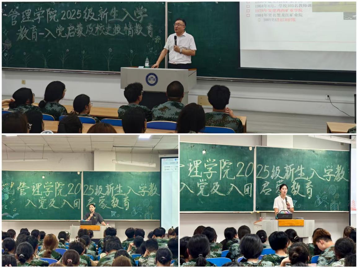 17/ 2025-09管理学院新生入学集中教育圆满完成 ——多维赋能启新程,铸魂育人谱新篇为助力2025级新生尽快适应大学生活、明确发展方向,管理学院严格遵循学校《2025级学生入学教育方案》和《2025级学生入学教育活动参考指南》,于前置准备与入校适应两个阶段,精心组织了一系列新生入学教育活动,为新生的全面成长和成才奠定了坚实基础。秉云端之便,固衔接之本,稳启航之步。学院创新推出线上“入学前置课”,通过“线上破冰班会”促进新生相互了解,实现新生初步适应与集体融合;“心声征集”精准把握480名学生状态,传递身心关怀;依托云端渠道上线10期《新生导航站》以及通过“线上...