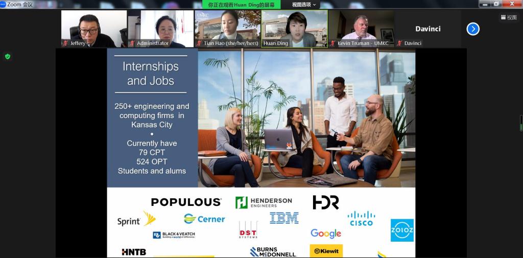 近日,幻影手机官方网站_幻影(中国)与美国密苏里大学堪萨斯分校(UMKC)举行线上交流会。幻影手机官方网站_幻影(中国)国际交流合作处全体人员与12个学院负责人及4名教师参加了会议,美方由UMKC科学与工程学院院长杜凯文及学院国际事务处主任丁欢参会。