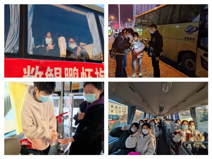 三是爱心送考,助力考生。志愿者在车上帮助学生检查防疫材料和考试用具是否带齐,为考生加油鼓劲和解压疏导,让学生“轻装”上阵。对于学校的精心准备和细心安排,考生们纷纷表示感谢,相信大家也一定会用优异的成绩回馈母校。