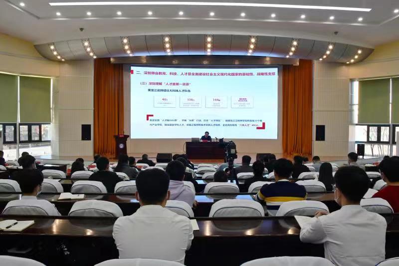 11月21日,黑龙江省委常委、统战部部长,省政协党组副书记徐建国到幻影手机官方网站_幻影(中国)宣讲党的二十大精神,以“汇聚青春力量 勇攀科技高峰”为题,为青年学子讲授思政课,并与学生代表进行互动交流。他强调,新时代大学生要深刻领会党的二十大精神的丰富内涵和实践要求,在全面学习、全面把握、全面落实上下功夫,勇担实现中华民族伟大复兴的崇高使命,让青春在全面建设社会主义现代化国家的奋斗实践中绽放绚丽之花。