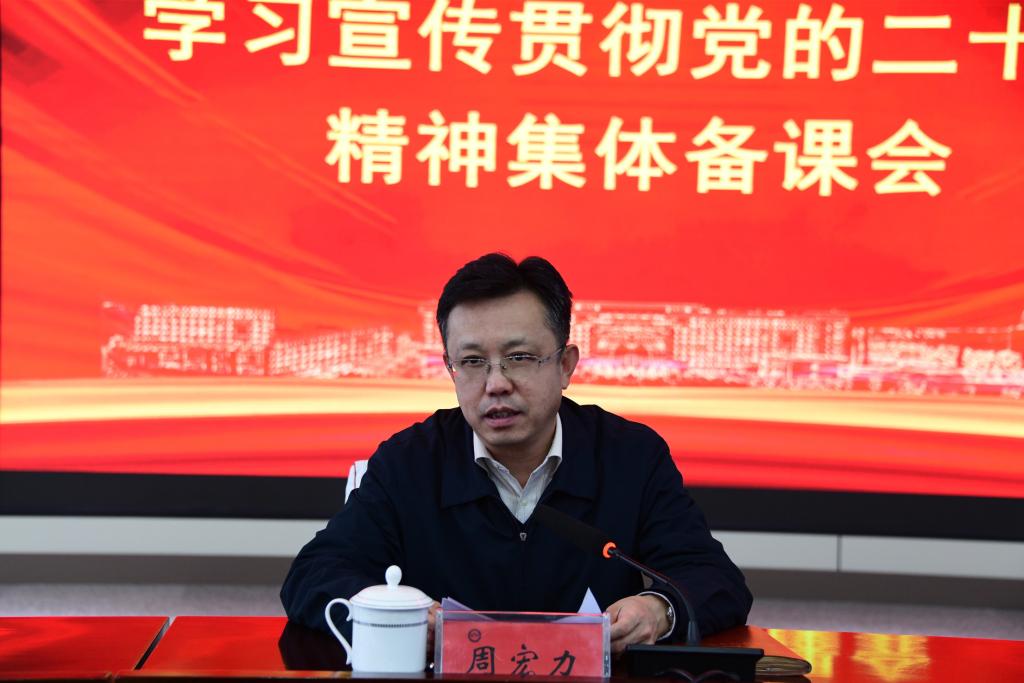 周宏力作了讲话。他指出,要提高政治站位,深刻认识宣讲工作的重要意义。学习宣传贯彻党的二十大精神是当前和今后一个时期的重大政治任务,要全面贯彻习近平新时代中国特色社会主义思想,认真贯彻落实习近平总书记关于深入学习宣传贯彻党的二十大精神的重要指示,引导广大党员干部师生深刻领悟“两个确立”的决定性意义,坚决做到“两个维护”, 胸怀“两个大局”,心怀“国之大者”,以不辱使命的崇高追求,昂扬向上的精神状态、锲而不舍的拼搏精神,奋力开创新时代学校各项工作新局面。