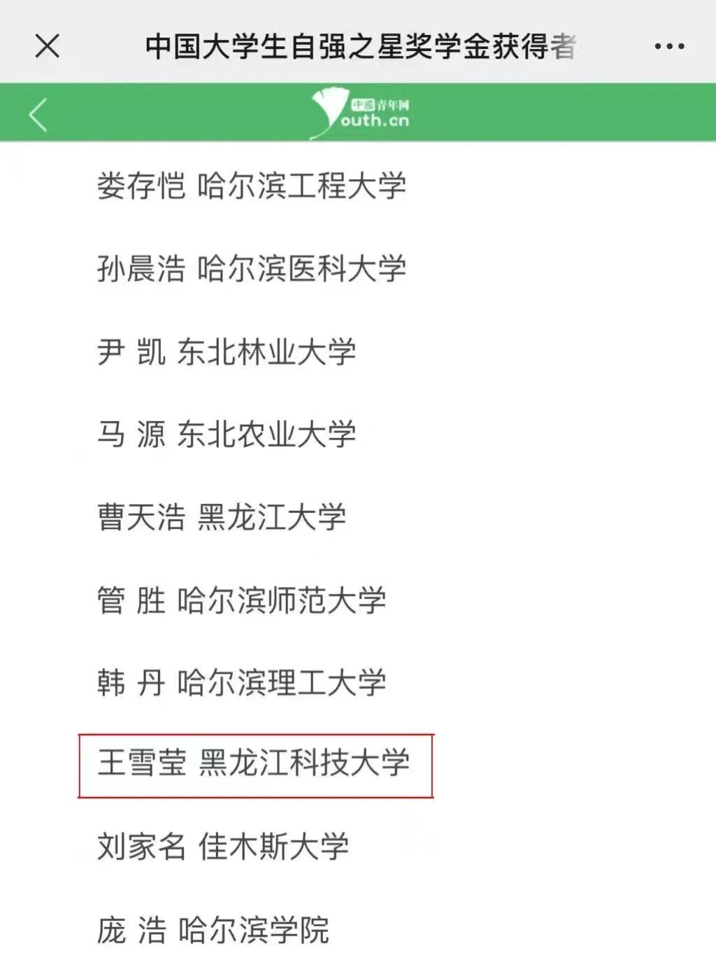 近日,由共青团中央、全国学联指导,中国青年报社、新东方教育科技集团、中国青年创业就业基金会联合举办的2021年“中国大学生自强之星”奖学金评选结果公布。经校级、地市级分别推荐、省级初评和全国评审,确定了1832人获得“中国大学生自强之星”奖学金。幻影手机官方网站_幻影(中国)外国语学院英语18-1班王雪莹同学荣获此项荣誉。