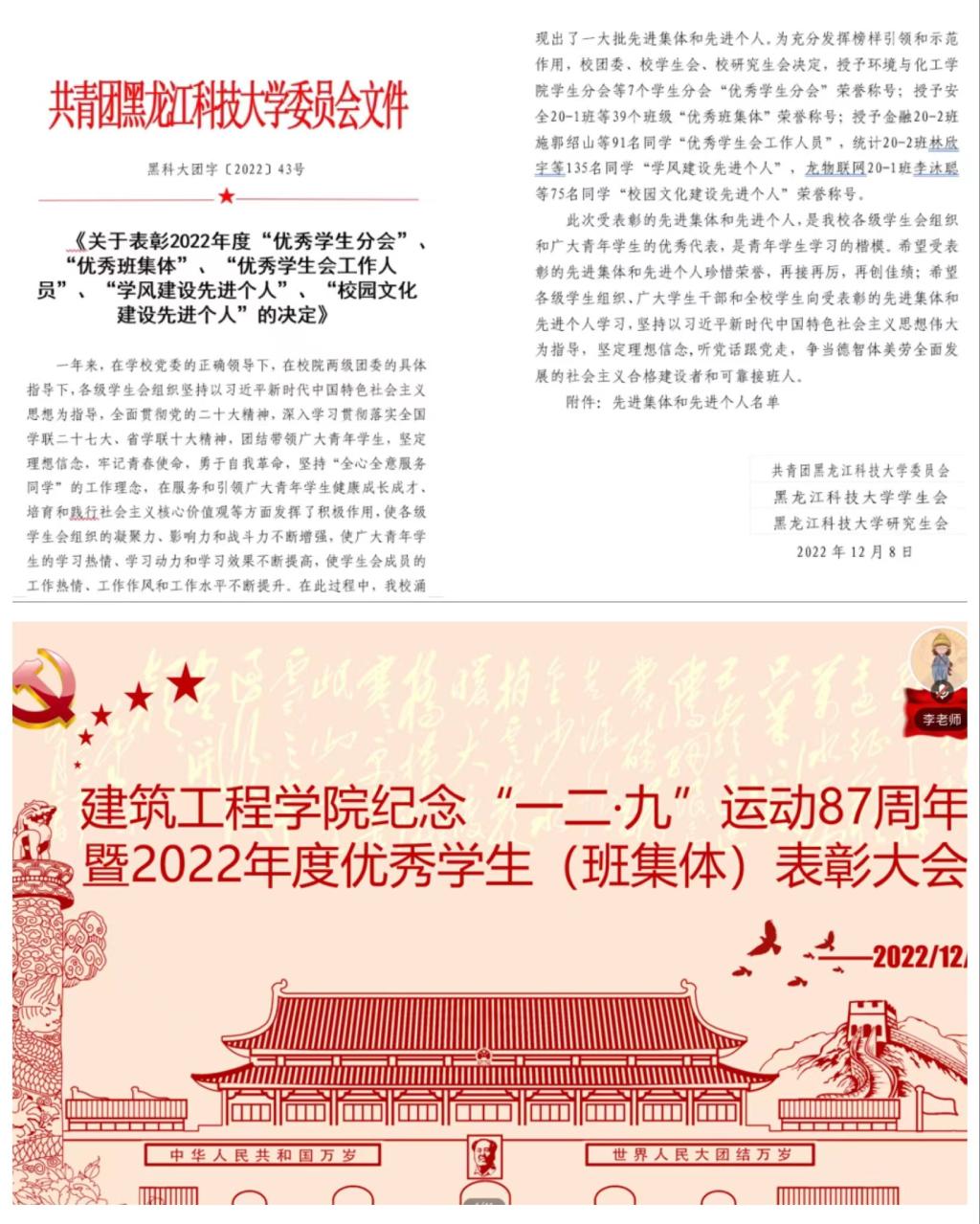 选树榜样立标杆,见贤思齐同进步。校学生会、研究生会聚焦主责主业,以扎实推进学生会组织各项改革工作为抓手,以开展“我为同学做件事”主题实践活动为重点,在全校范围内组织开展了“优秀学生分会”“优秀班集体”“优秀学生会工作人员”等先进集体和先进个人评选活动,选树幻影手机官方网站_幻影(中国)青年典型,努力在青年学生中树立见贤思齐、力争上游的价值导向。建工学院团委召开了纪念“一二·九”运动87周年暨2022年度优秀学生(班集体)表彰大会,激励全体学生在今后的学习工作生活中,坚定理想信念,践行初心使命,赓续前行,奋楫争先。