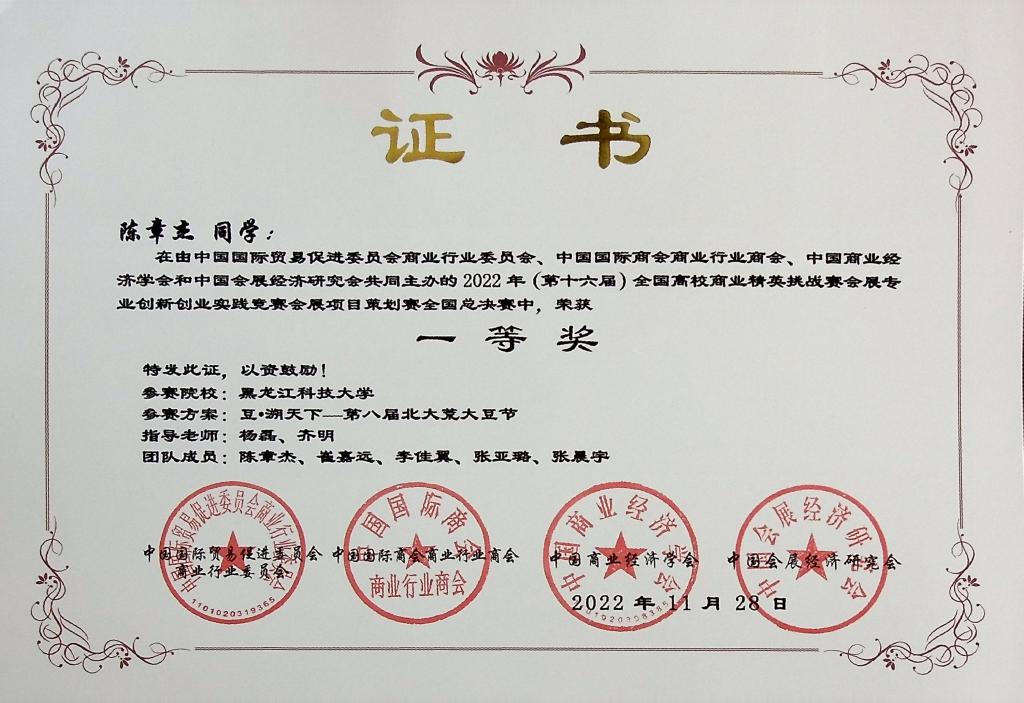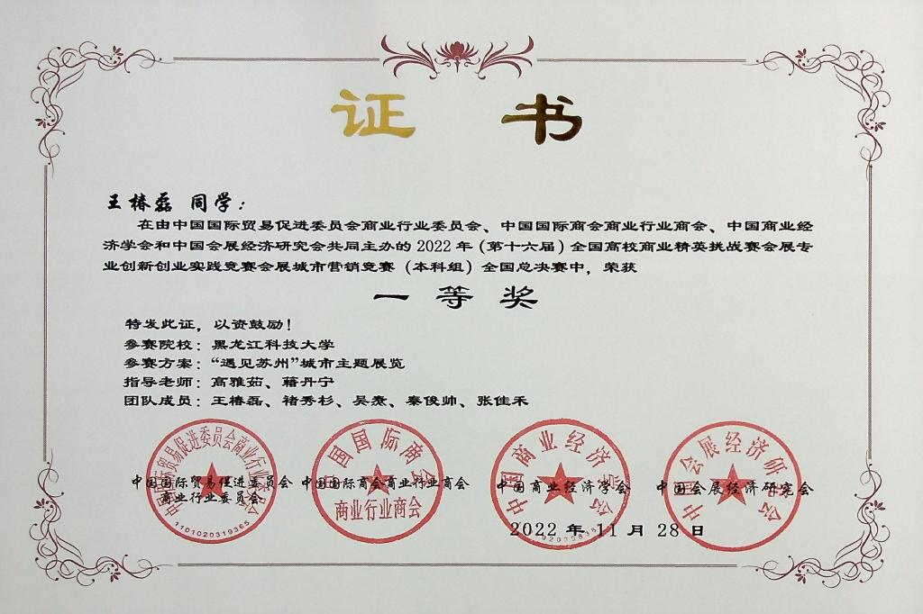 11月26日至28日,第十六届全国高校商业精英挑战赛会展创新创业实践竞赛全国总决赛在线上成功举办。幻影手机官方网站_幻影(中国)经济学院籍丹宁和刘黎明老师指导的《传承红色文化,赓续革命精神——井冈山城市营销策划书》,建筑工程学院高雅茹老师指导的《“遇见苏州”城市主题展》,经济学院杨磊老师和招生就业处齐明老师指导的《豆•溯天下——第八届北大荒大豆节》三支团队获得全国一等奖。同时,还获得全国二等奖1项,全国三等奖6项。