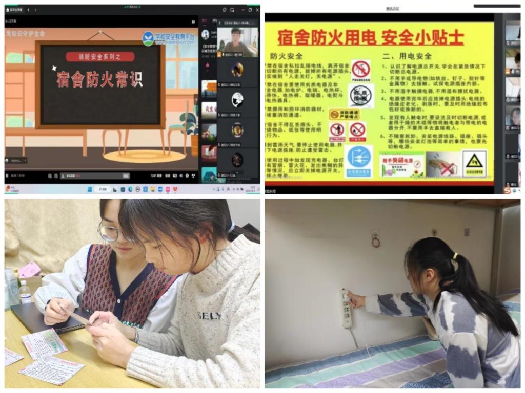 开展宿舍防火安全教育。寝室是学生生活、学习和休息的场所,各学院结合实际,通过线上班会、制作温馨提示卡片等多种形式,引导学生自觉维护宿舍防火安全,教育学生掌握防火、用电安全知识,增强学生的防范意识,掌握防火安全知识,增强学生的防范意识。