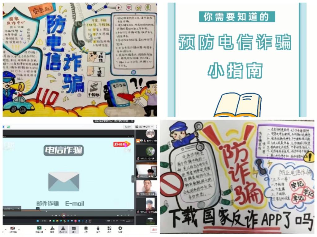 开展防电信诈骗安全教育。近年来,电信诈骗花样层出不穷,电信诈骗的背后是法律意识的缺失,是道德和人性的沦丧,是对法纪的蔑视。各学院利用班会、公众号、制作手抄报等方式向学生普及电信诈骗种类、预防方法等,切实提高广大学生对电信诈骗犯罪的识别和应对能力,提升广大学生的法律法规意识和道德文明素养。