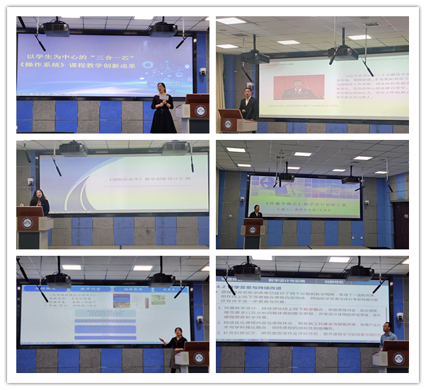 参赛教师结合自身教学改革实践与成果,汇报了坚持“以学生为中心”的教学创新思路与创新方法,灵活运用信息化手段,实施课程思政育人,采用多元评价方式,展现了生动活泼的授课形式,呈现了较高水平的课程教学创新成果。经激烈而精彩的现场决赛,最终共评选出一等奖6名、二等奖8名、优秀奖13名。