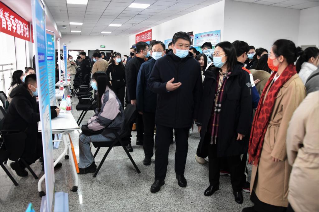 招聘会现场人潮涌动,气氛热烈。省人力资源和社会保障厅二级巡视员高广宏、校长孟上九亲临招聘会巡场指导,并与参加招聘会的学生进行交流。校党委副书记桑玉军,省人才服务中心党委书记、主任盛利臣等陪同,现场对如何开展高校毕业生就业工作、如何更好精准服务毕业生就业、如何搭建校企合作和双选平台等方面进行了深入交流和探讨,并一同参观了学校模拟矿井。