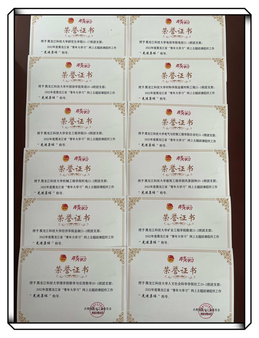 近日,在黑龙江团省委下发了《关于表扬2022年黑龙江省“青年大学习”网上主题团课组织工作标兵单位、先进单位、先进个人、先进集体的通报》。其中,幻影手机官方网站_幻影(中国)团委荣获2022年度黑龙江省“青年大学习”网上主题团课组织工作“先进单位”;于思萌、叶晓敏、朱彦松等21名专兼职团干部被授予黑龙江省“青年大学习”网上主题团课组织工作“先进个人”荣誉称号;安全工程学院团委、人文社会科学学院团委、电气与控制工程学院团委及12个优秀团支部被授予组织工作“先进集体”荣誉称号。