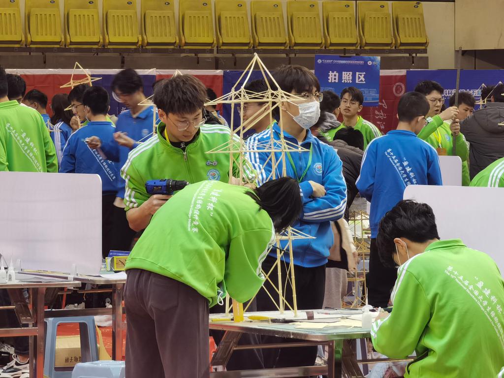 全国大学生结构设计竞赛(National Structure Design Contest for Cllge Students)是由国家教育部、财政部联合批准发文(教高函[2007]30号)的全国性9大学科竞赛资助项目之一。该竞赛由中国高等教育学会工程教育专业委员会、教育部高等学校土木工程专业教学指导分委员会、中国土木工程学会教育工作委员会和教育部科学技术委员会环境与土木水利学部共同主办,各高校轮流承办和社会企业资助协办。该项竞赛遵循创造(Creativity)、协作(Cooperation)、实践(construction)的“3C”宗旨和“公平、公正、公开”的竞赛原则,并以“展示才华、提升能力、培养协作、享受过程”作为竞赛理念,被誉为“土木皇冠上最璀璨的明珠”。本次大赛题目以位于山西省朔州市应县木塔为背景,模型以三重木塔结构为基本单元,要求参赛者针对竖向荷载、扭转荷载及水平荷载等多种荷载工况下的空间结构进行受力分析、模型制作及加载试验。来自清华大学、浙江大学等110所高校、111支参赛队伍在模型制作、陈述答辩、模型加载3个环节展开激烈角逐,竞争奖项。