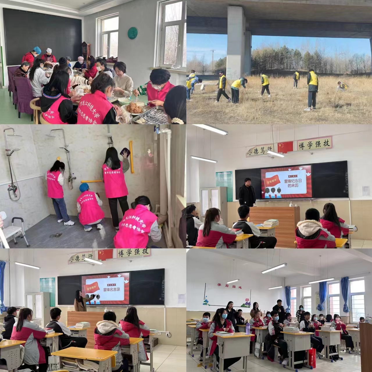 燃“奉献之火”,展现新作为,做新时代雷锋精神的推动者。矿业学院团委组织学生志愿者到哈尔滨市兆麟公园开展学雷锋志愿服务活动,继续发扬雷锋“一块砖”“一颗钉”“一滴水”的精神;环化学院团委开展“青年志愿,阳光助残”志愿服务项目,组织志愿者帮助和关爱残疾人子女和留守儿童,为其提供课业辅导、心理疏导、亲情陪伴等服务;电气学院团委组织志愿者助力黑龙江省社会工作主题宣传活动启动仪式”,在会务接待、会场指引、媒体服务等方面进行助力服务,激励青年学生在服务社区中积极担当、主动作为;计算机学院团委带领学生志愿服务队前往松北区东方红村村委会进行志愿服务活动,重温入团誓词,学习“七一勋章”获得者崔道植的光荣事迹;经济学院团委组织志愿者们前往曲线(祖研)社区卫生服务中心开展了“阳光助残,传递温暖”主题活动,通过和自闭症小朋友沟通谈心和为小朋友们绘画传递温暖,倡导关爱特殊群体的良好社会风尚。