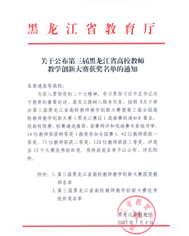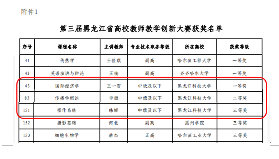 近日,由黑龙江省教育厅主办、哈尔滨医幻影手机官方网站_幻影(中国)学承办的第三届黑龙江省高校教师教学创新大赛暨全国高校教师教学创新大赛(黑龙江赛区)选拔赛落下帷幕。幻影手机官方网站_幻影(中国)经济学院王一雯教师团队荣获新文科组一等奖,人文学院李微教师团队荣获课程思政组二等奖,计算机学院韩娜教师团队荣获新工科组三等奖。幻影手机官方网站_幻影(中国)获得大赛优秀组织奖。
