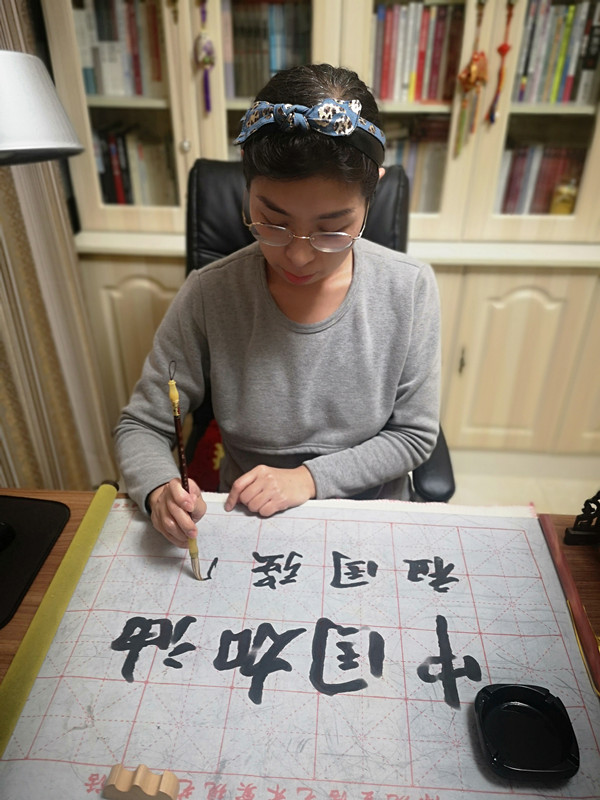 充实的假期,在工作之余,李璐老师还会通过写毛笔字的方式,调整一下忙碌的节奏,舒缓身心,与家人一起等待疫情过后的暖阳花开。