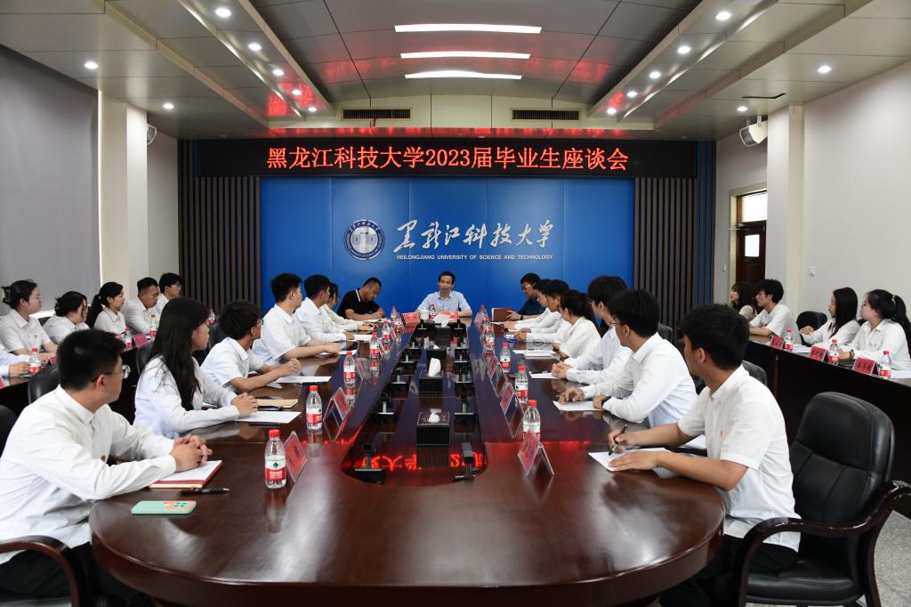 6月19日下午,学校在办公楼6001会议室召开2023届毕业生代表座谈会。校党委副书记桑玉军主持会议并讲话,学生处等相关部门负责人以及2023届毕业本科生、硕士研究生、博士研究生代表23人参加座谈会。