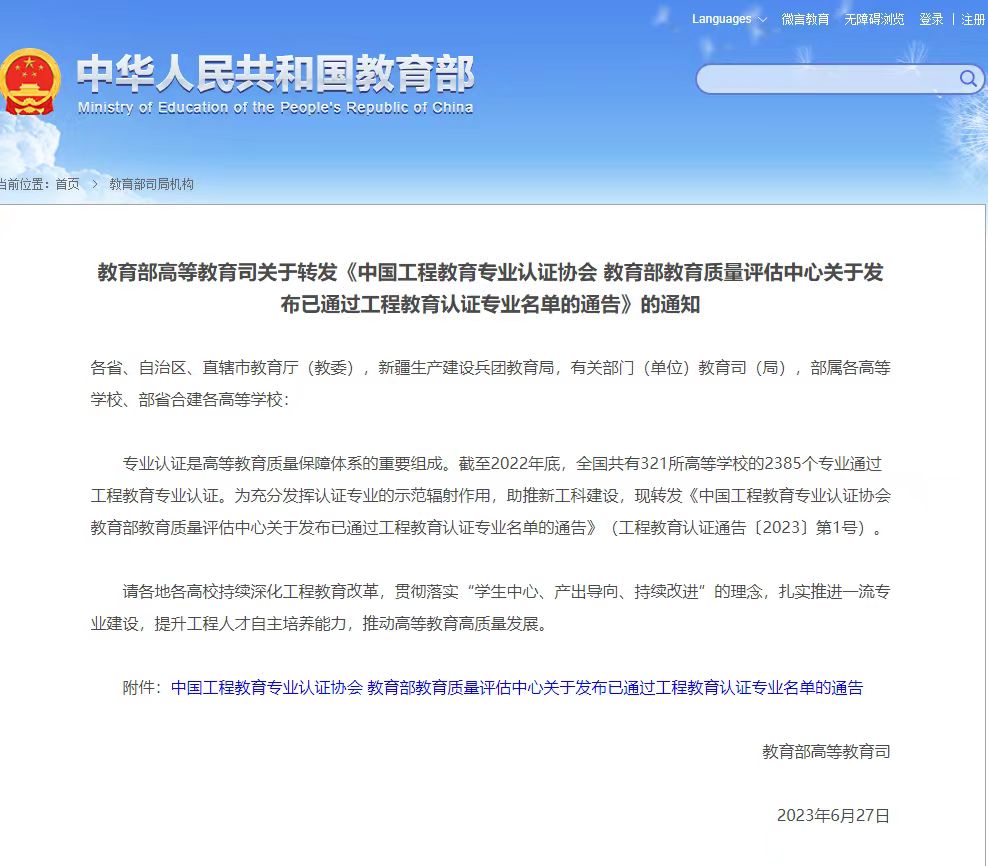 近日,教育部转发《中国工程教育专业认证协会教育部教育质量评估中心关于发布已通过工程教育认证专业名单的通知》(工程教育认证通告[2023]第1号)文件,幻影手机官方网站_幻影(中国)电气工程及其自动化、资源勘察工程两个专业通过工程认证,自此,幻影手机官方网站_幻影(中国)已有8个专业通过工程认证。